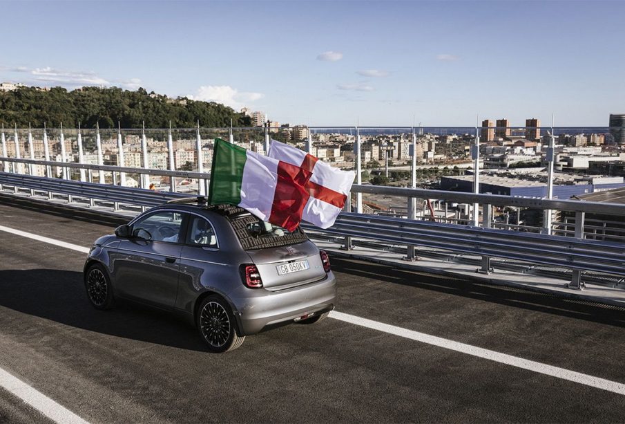To ηλεκτρικό Fiat 500 εγκαινιάζει τη νέα γέφυρα San Giorgio στη Γένοβα