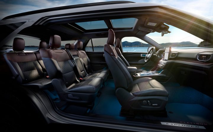 Αξιοποιώντας στο μέγιστο βαθμό τις εντυπωσιακές εξωτερικές διαστάσεις του, το πολυτελές SUV μοντέλο της Ford προσφέρει απλόχερα άπλετους χώρους για μέχρι και 7 ενήλικους επιβάτες. Με περίπου 1 μέτρο χώρο για το κεφάλι και στις τρεις σειρές καθισμάτων και πάνω από 1,5 m για τους ώμους και τους γοφούς για όσους φιλοξενούνται στην πρώτη και δεύτερη σειρά, όλοι μπορούν να απολαμβάνουν τώρα την πολυτέλεια της καμπίνας του νέου Explorer.