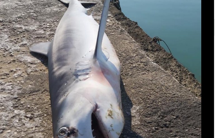 Τρόμος από τον καρχαρίας που πιάστηκε στα δίχτυα ψαρά στον Άσσο Κορινθίας (φώτο