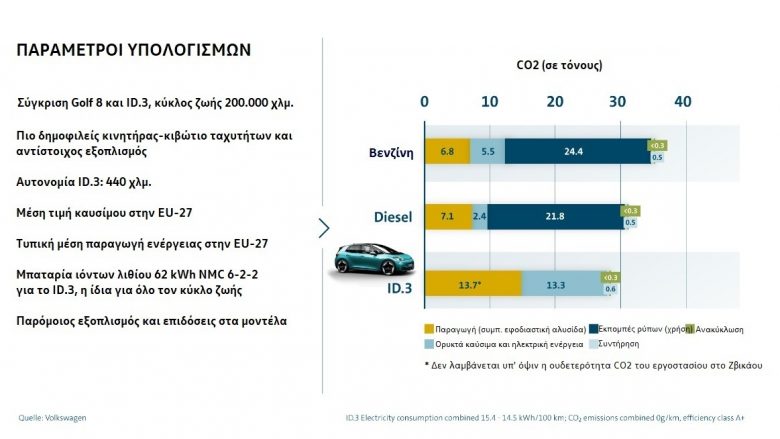 Συμπερασματικά, οι μηχανικοί της Volkswagen είναι κατηγορηματικοί: το ID.3, αλλά και γενικότερα ένα ηλεκτρικό αυτοκίνητο στην Ευρώπη σε ολόκληρο τον κύκλο ζωής του, είναι ήδη σήμερα πολύ πιο φιλικό προς το κλίμα από ένα αντίστοιχο με κινητήρα εσωτερικής καύσης.